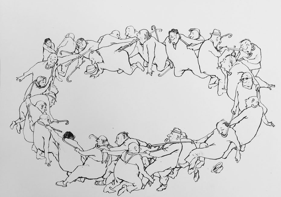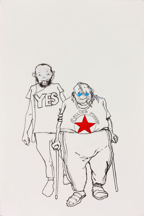 "Micky und unsere Brüder aus Pennsylvania", 2018. Tusche, Deckweiß auf Karton.