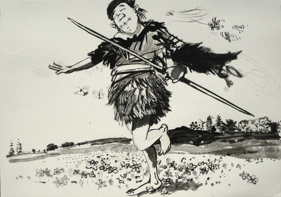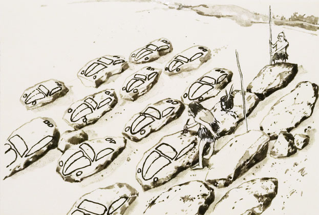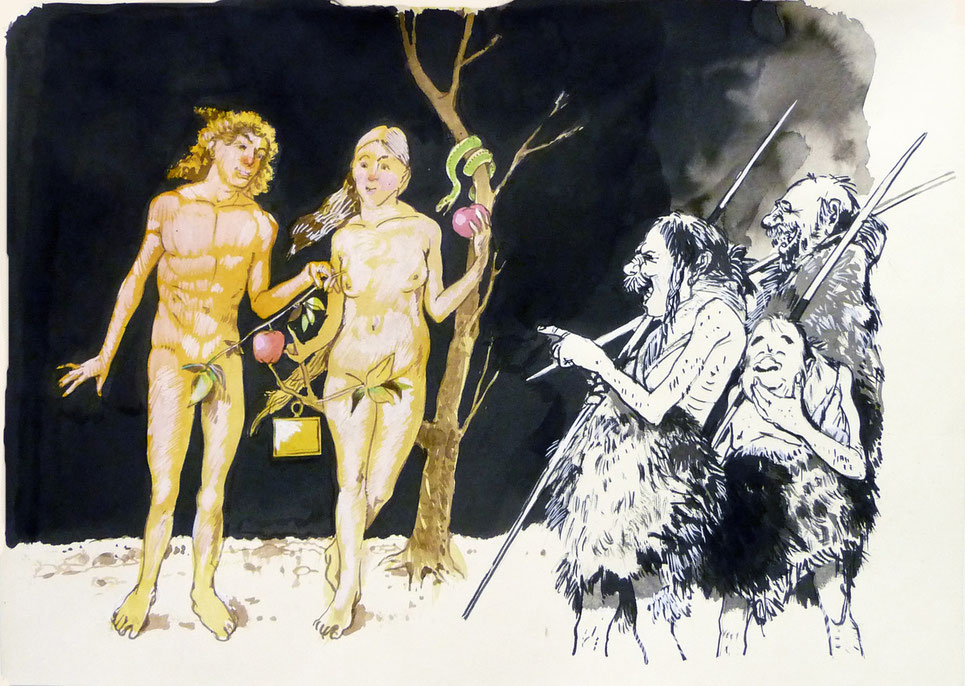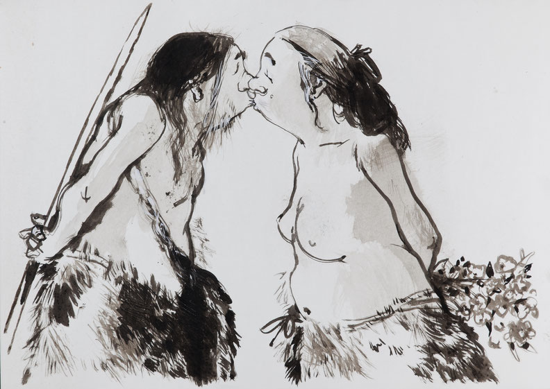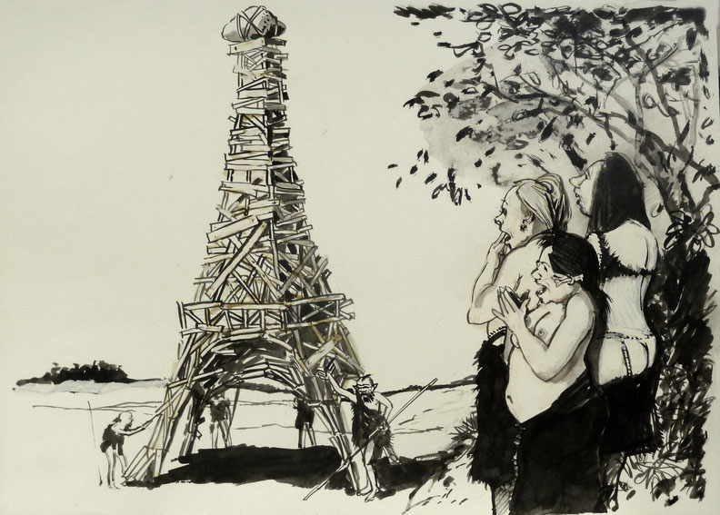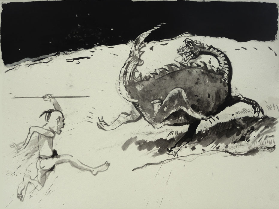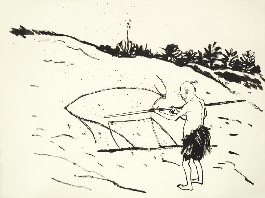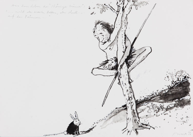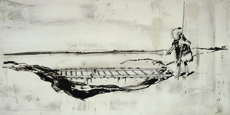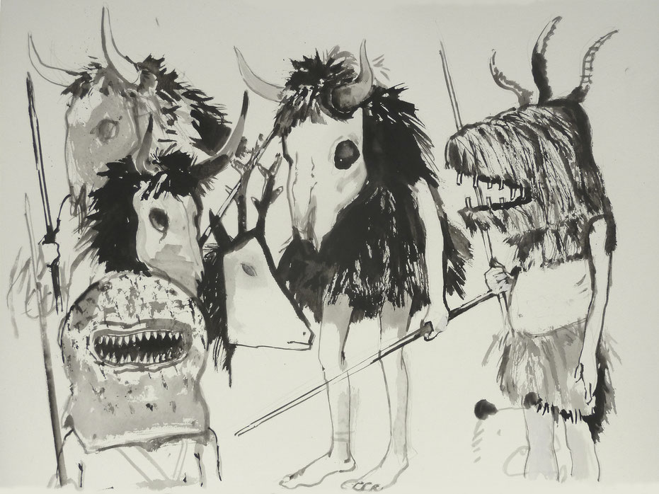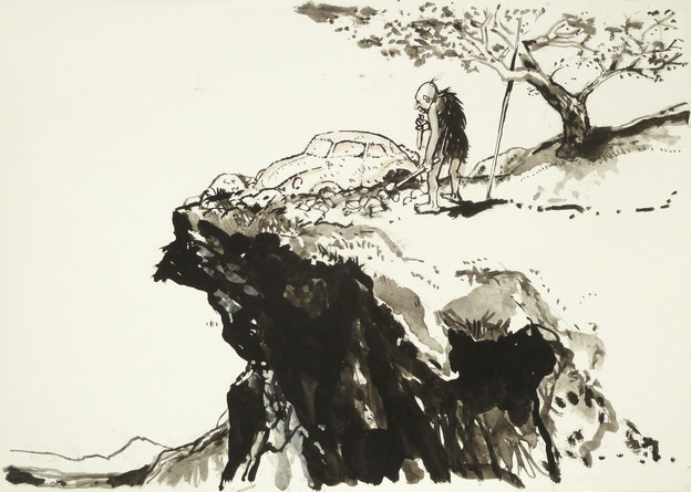 "Begegnung mit der Gefahr", 2012, Tusche auf Karton