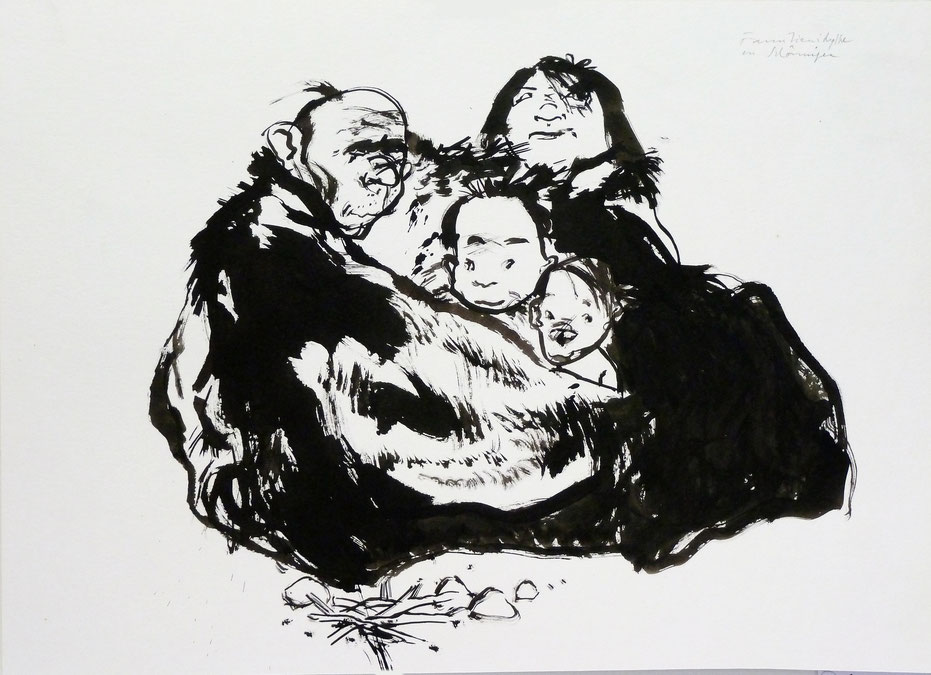 "Unsere besten Freunde", 2019. Tusche, Deckweiß auf Karton, 70 x 100 cm