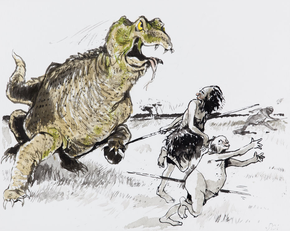 Mit ihren überlegenen Jagdmethoden ließ sich früh der Hunger der Sippschaft in Grenzen halten. So blieb den Jägern Zeit für sportliche Spielerei und Freizeit, Beliebt als Mutprobe, dabei mit hohem Unterhaltungswert, vor staunenden Müttern und lernwilligen Jungen. Besonders geschätzt war das Dressieren der ungenießbaren, aber eher nutzlosen Riesenechsen. Eine Herausforderung für die mutigsten der Schöninger Männer. Tollpatschig wild mit peitschenden Schwänzen, brauchte auch der geschickteste Schöninger viel Mut und Ausdauer bis er aus den aggressiven Viechern nutzbare Mitbewohner abgerichtet hatte.
