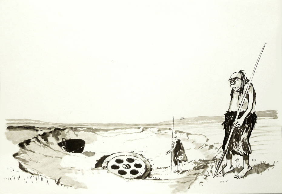 Für den einsam herumstreifenden Schöninger Jäger gab es in der Gluthitze des Sommernachmittags keinen schattig,, kühlen Ort.