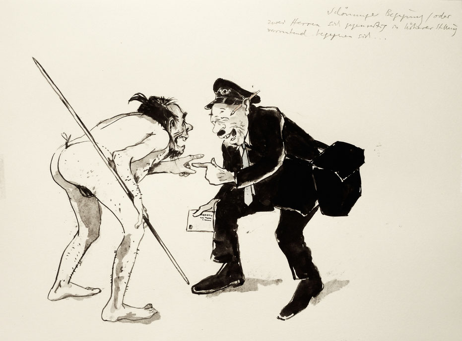 Schöninger Begegnung / oder Zwei Herren sich gegenseitig in höher Stellung vermutend, begegnen sich.
